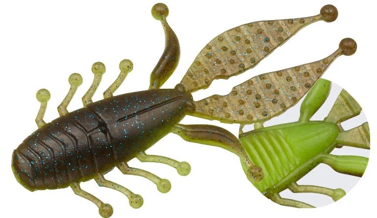 Designed by Toshifumi Kikumoto, “Kicker Bug” is a bulky claw in which each mysterious part plays a different movement. The leg with a ball-shaped tip produces a unique slight vibration, and the flappin scissors move water greatly, and the bite is induced by falling down after landing. Its silhouette and unique action stimulate the instinct of the big bass, inducing a strong and deep bite. Not only jig trailers, but also Texas rigs, heavy down shots, heavy Carolinas, no sinkers, cat rigs, etc. A different dimension life form “kicker bug” of a big bass killer.