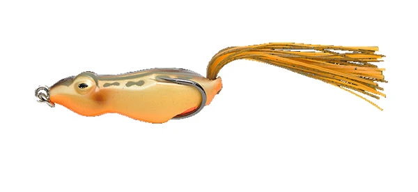The Megabass Pony frog is a bite-sized, ultra compact frog that still offers overwhelming castability. A stratigically placed delta weight between the hooks allows for an effortless walk the dog action and makes it easy for the body to collapse without interfering with the hookset. The ponytail set skirt creates a mellow flare that follows the action of the frog without creating drag across the surface. The balloon throat creates a splash when twitching to appear more lifelike and bring out the monsters from the deep.