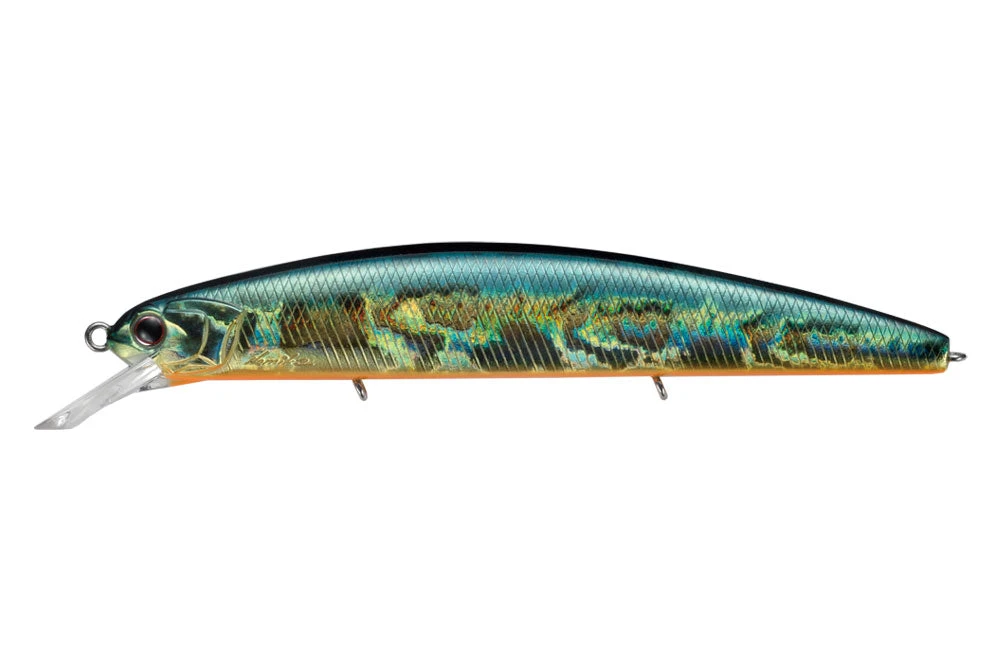 The Varuna 110F is a flat side concept minnow that creates more flashing effect and water drive than round body minnow. The small-diameter triple tungsten center of gravity movement allows the weight to reach near the tail, achieving accuracy and long cast performance with a stable flight attitude. This also contributes to the unique sound and lowering of the center of gravity of the weight, and by fusing with the Honeycomb Super HP body (PAT.), Which is both lightweight and strong, it has a high response and a good start and go action, even on a straight retrieve.
