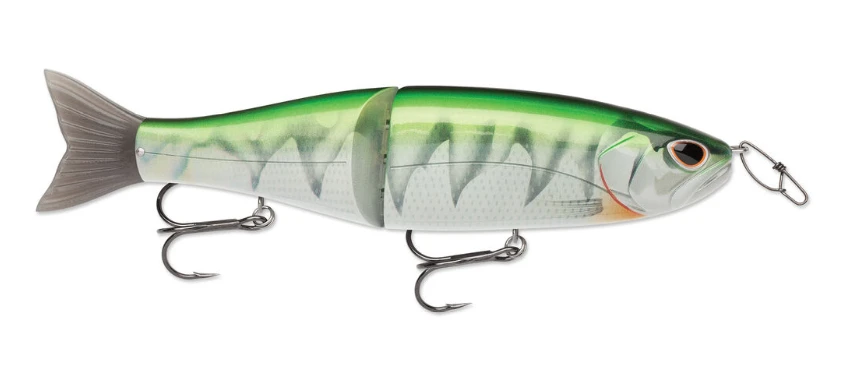 After years of design, testing, adjustments and more testing, the Arashi Glide Bait delivers a fine-tuned, consistent, stable glide action at every speed. Developed to sink slowly in a slight head down position, the Arashi Glide Bait responds to the slightest line movement. Swimming in an exaggerated “S” action that piques interest of large predators, a quick snap of the rod tip turns the AGB 180 degrees, triggering strikes from followers. Controlled sink rate provides the angler increased control of swimming depth keeping the Arashi Glide Bait in the strike zone longer. Versatile action, triple-pin hinge construction merged with swiveling hooks for reduced leverage and just the right color patterns result in an unbeatable masterpiece of lure design.