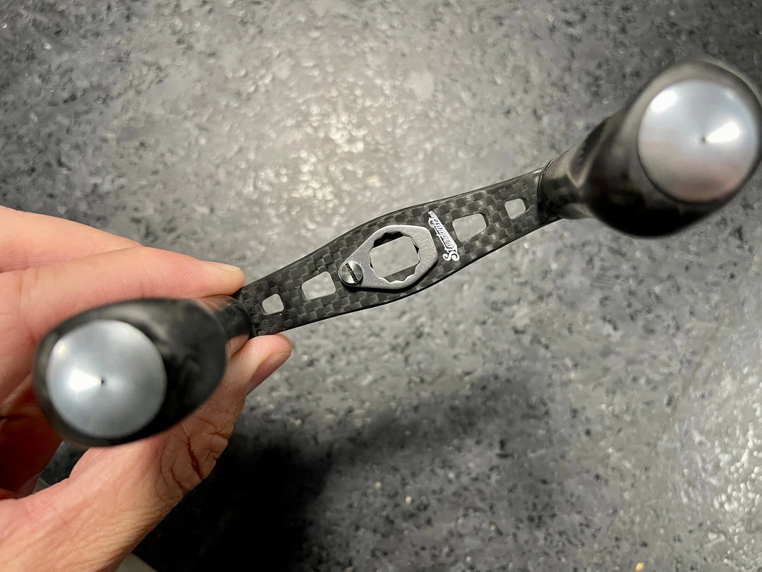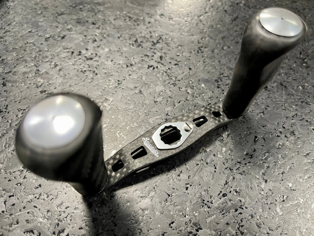 Studio Composite created the CQC series to for anglers aiming for higher performance and versatility from their gear. These handle were designed with sensitivity and torque in mind for lower gear ratio reels. Its flattened paddle-style carbon knobs allow for positive gripping force and comfort in hand.